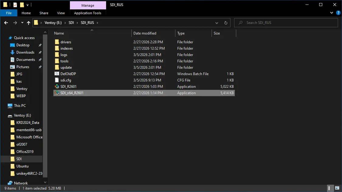 Sau khi extract xong bạn sẽ chạy chương trình SDI (nếu bạn sử dụng windows 32 bit) hoặc SDI_x64 (nêu bạn sử dụng windows 64 bit) như hình