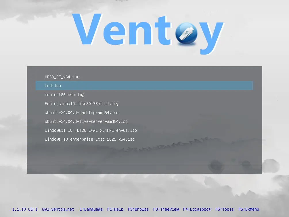 Say đó mình chỉ cần copy vào usb Ventoy và tiến hành boot từ menu khởi động của usb boot như sau: