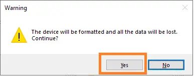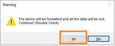 ventoy cảnh báo thêm một lần nữa trước khi format USB
