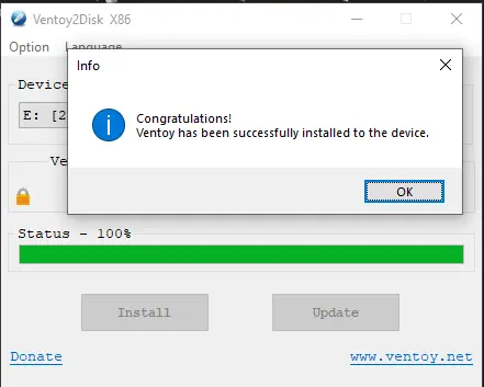 Ventoy cảnh báo usb của bạn sẽ được Format trắng