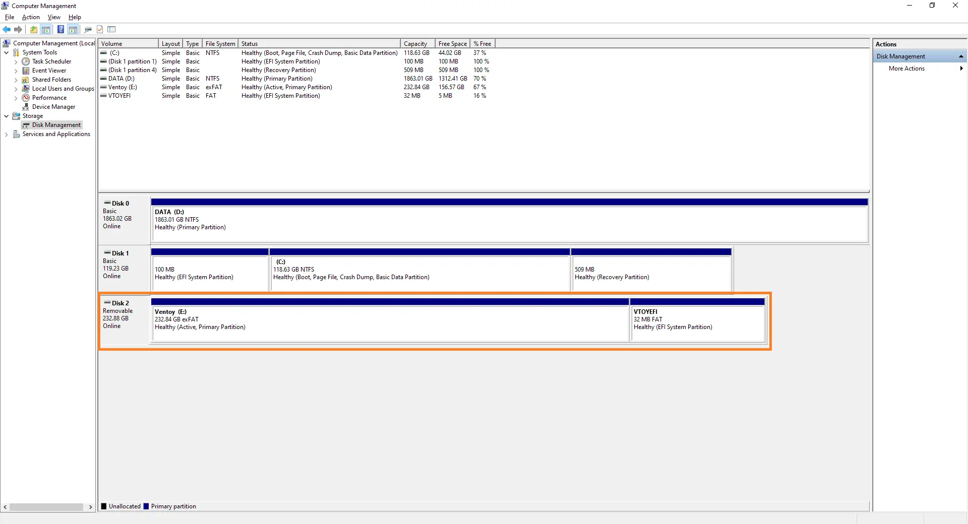 Sau khi hoàn thành, USB sẽ có phân vùng Ventoy.