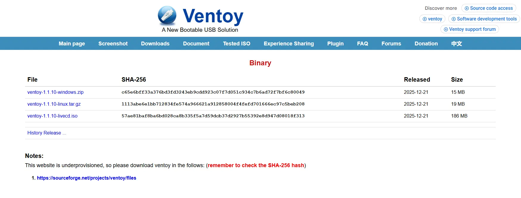 Truy cập trang chủ Ventoy → Download phiên bản giành cho Windows mới nhất. Bên cạnh đó cũng có phiên bản giành cho linux.